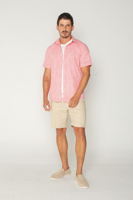 O detalhe em tecido xadrez aplicado no verso da gola e do peitilho adiciona um toque único, elevando o visual com um ar diferenciado.