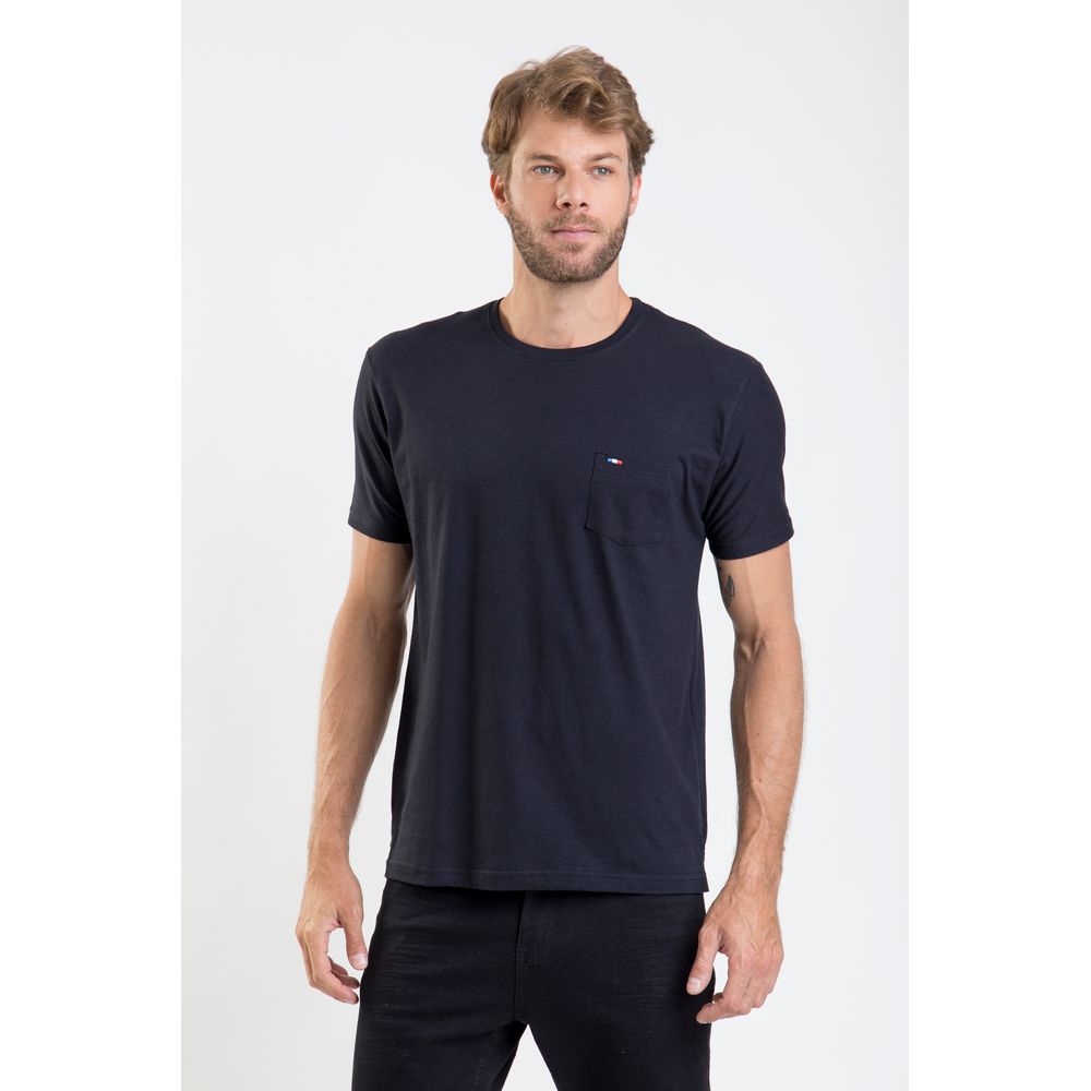 Economia de R$ 50,00T-shirt manga curta e decote redondo com ribana é confeccionada no puro algodão que possui um toque leve e macio.Bolso frontal no peito com nossa tradicional bandeirinha bordada.